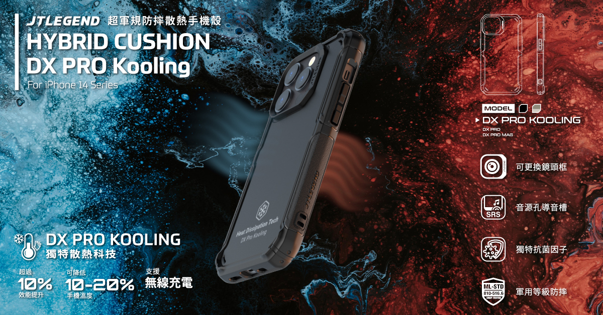 專利散熱技術、超越軍規防摔、防滑好握手感、特殊抗菌材質 - iPhone 14 手機使用者最佳散熱選擇。