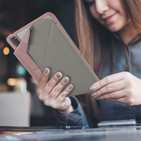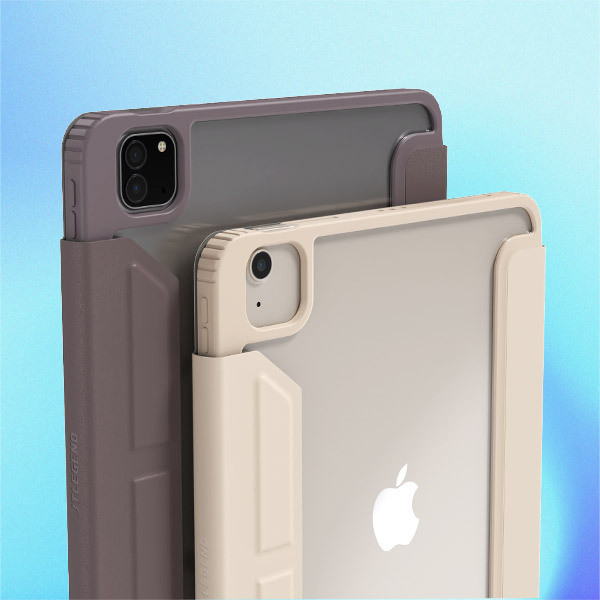 四角防撞設計與透明背板,提供平板防護並能展示原始iPad設計。