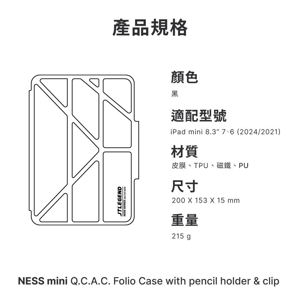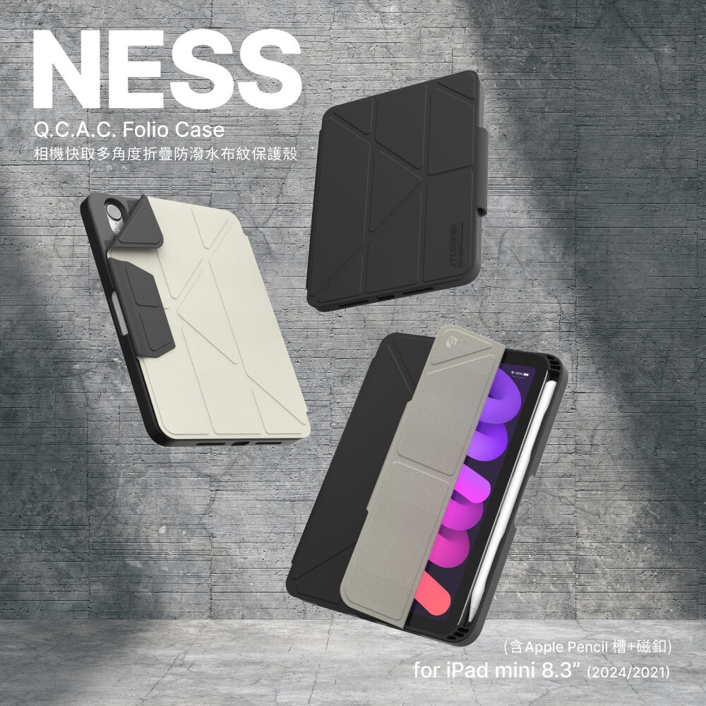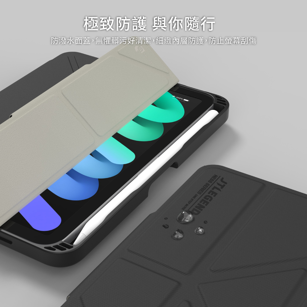 包裝內容物:JTLEGEND iPad mini 8.3'' 2024/2021 Ness 相機快取多角度折疊防潑水布紋保護殼(含Apple pencil筆槽+磁扣*1)