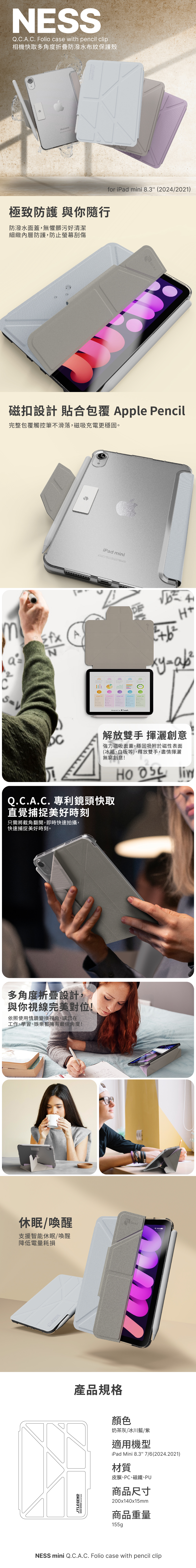 包裝內容物:JTLEGEND iPad mini 8.3'' 2024/2021 Ness 相機快取多角度折疊防潑水布紋保護殼(磁扣*1)
