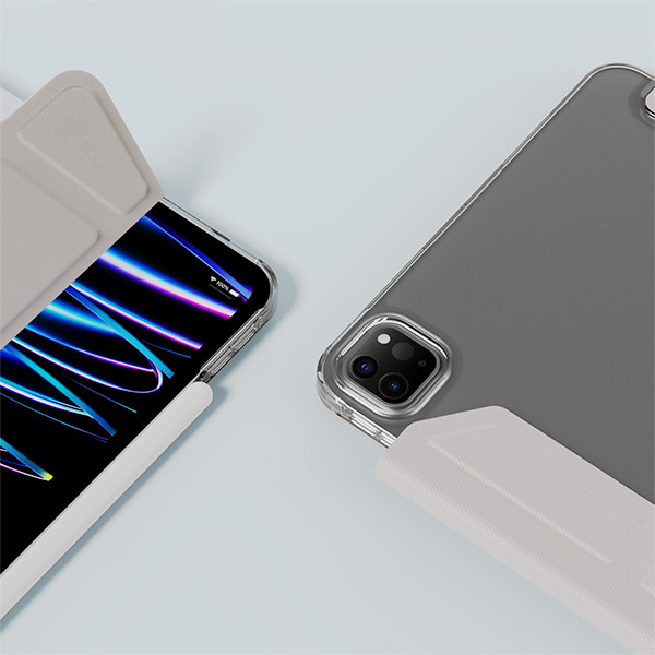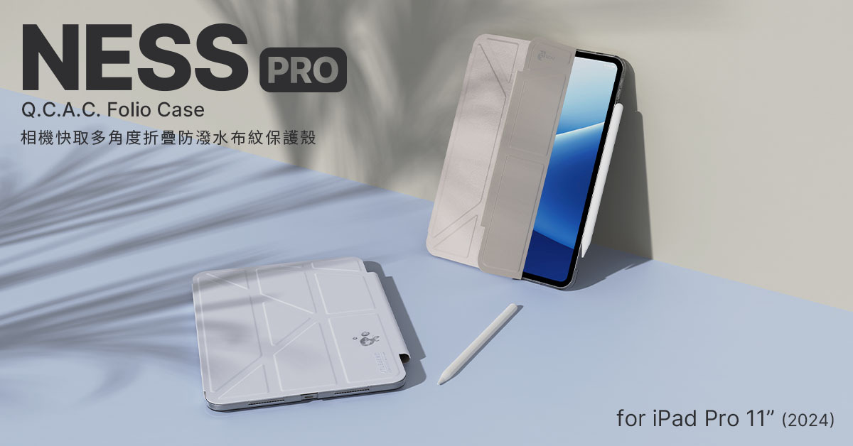 iPad Pro 2024 Ness Pro 11吋 相機快取多角度折疊防潑水布紋保護殼(磁扣) - 奶茶灰