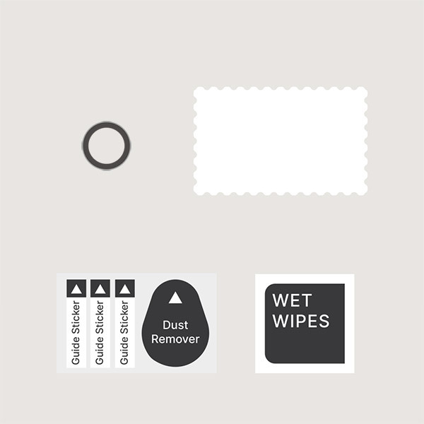 產品內容物:鏡頭保護貼x1 擦拭布x1 除塵貼紙x1 酒精擦x1