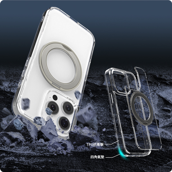 - 四角內建壓力分散氣墊,有效防摔、減少衝擊力