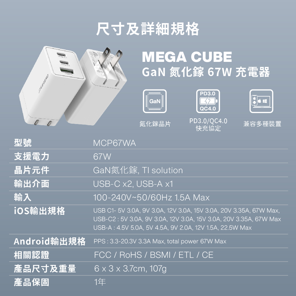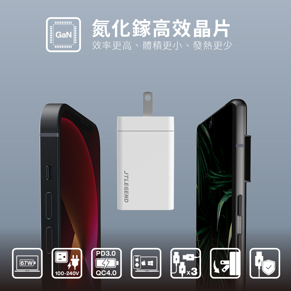 包裝內容物:JTLEGEND MEGA CUBE GaN 67W快速充電座x1