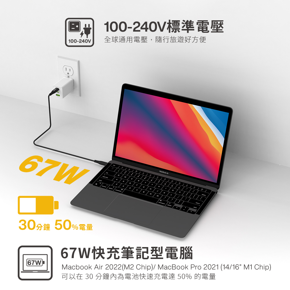 通過國內BSMI認證,100%安全充電保護,內建過壓過流及短路安全保護機制,全球通用, 100 - 240V 標準電壓。 並享有12個月產品保固以及友善的售後服務。